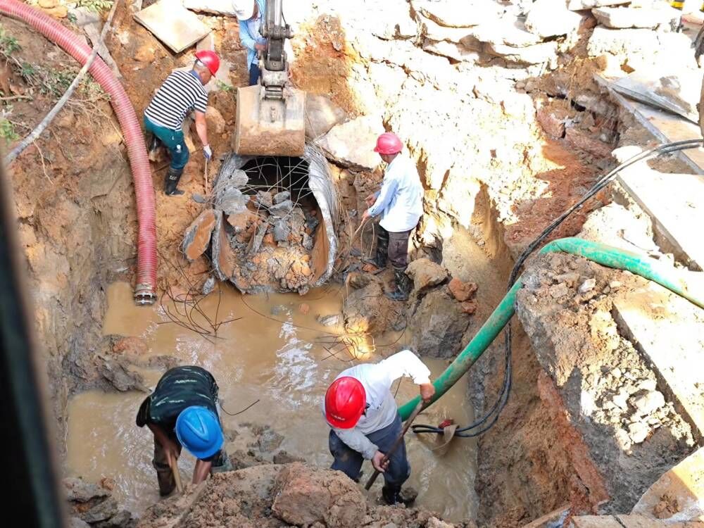 此次爆管口徑大,積水多,并且事發(fā)地位于交通主干道,周圍環(huán)境復雜,給協調開挖和排漬工作帶來不小困難。