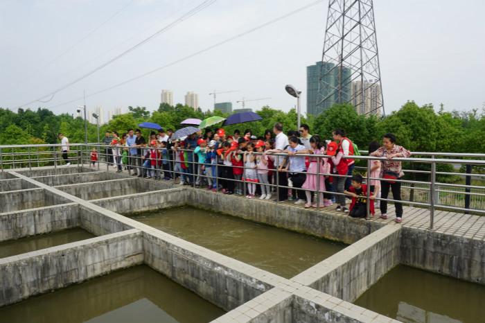 小記者們都是第一次走進(jìn)水廠,對每道生產(chǎn)流程都非常好奇,對每件處理設(shè)施都饒有興趣,一路走一路七嘴八舌地詢問;三水廠工作人員則結(jié)合水處理流程和工作原理,用淺顯而生動(dòng)的語言為他們一一講解說明,耐心細(xì)致地解答著每一個(gè)提問。在反應(yīng)沉淀池上,小記者們看到了渾濁的源水由兩根巨大輸水管道輸送到絮凝反應(yīng)池里,當(dāng)他們得知這里的源水都是來自34公里以外的漢江時(shí),不由得咋舌驚嘆“原來我們每天喝的自來水需要輸送那么遠(yuǎn)的距離啊,真是太不容易了!”