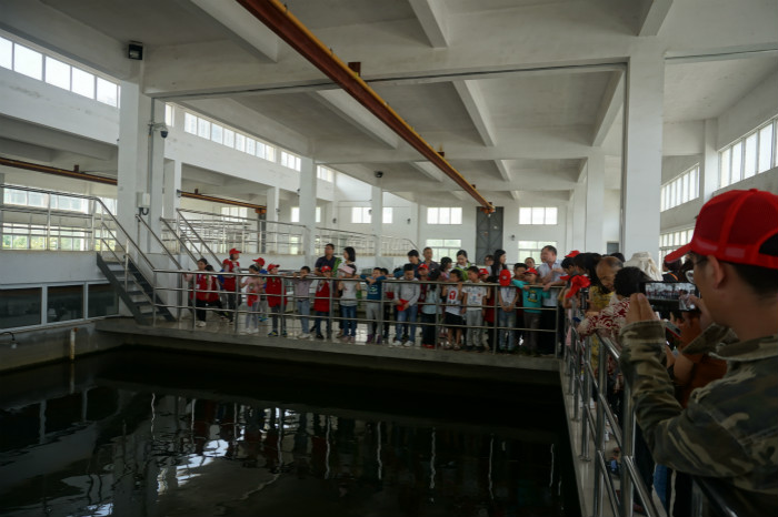 來到寬闊狹長的平流沉淀池邊,小記者們親眼看到在高分子聚合氯化鋁的作用下,原本渾濁的源水一點(diǎn)點(diǎn)變得清澈透明。在過濾車間,他們認(rèn)真觀察濾池反沖洗和水質(zhì)變化的過程;走進(jìn)送水泵房,他們在水泵機(jī)組轟鳴的運(yùn)行聲中,細(xì)心傾聽處理好的干凈自來水是如何送到千家萬戶的。