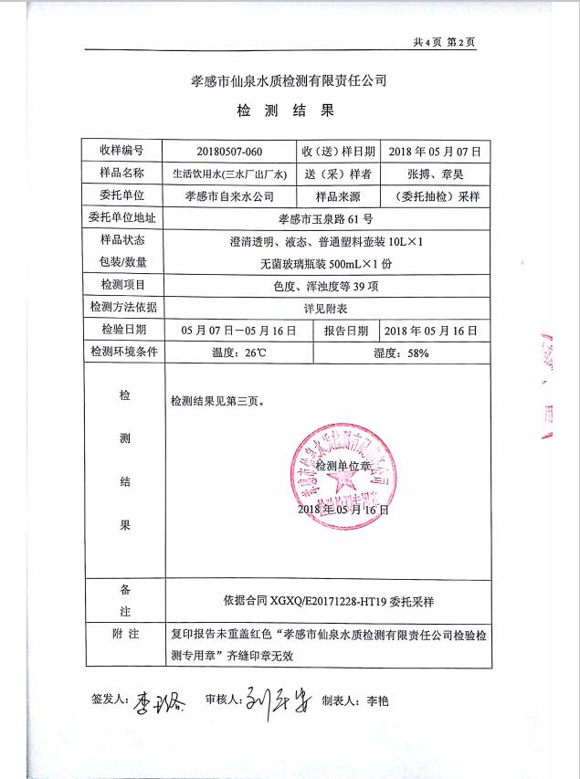 2018年5月水質(zhì)報(bào)告